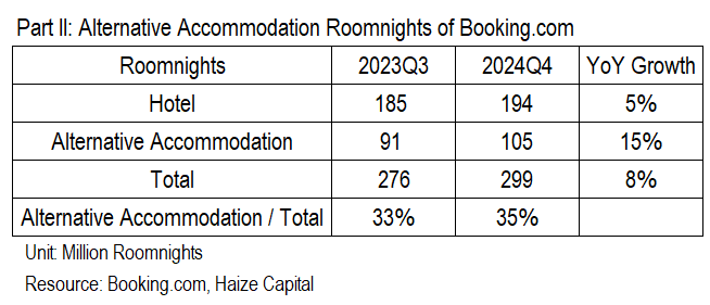 住宿平台只有个位数8%的年间夜增长率,这算强劲吗?算,如果它一个季度能产出3亿间夜的话。 这句话谈的正是Booking(NASDAQ: BKNG)的三季度财报。 2024年的Booking变得不一样了,今年它在历史上首次出现低于5%的间夜增速预期,这并不会因为季报结算超预期而烟消云散,因为明年再次上演的概率很高,Q3季报也确认了Booking从增长型公司走向价值型公司的趋势。 而在转变的过程中,间夜增速会比以前低,但盈利效率会比以前好,看起来员工还会更幸福(从平均薪资来看)。 我们若以公司的四大战略(增加替代住宿、增加直销通路、增强会员Genius产品以及推动其他旅行垂直领域的互联旅行)为经,亚洲、欧洲、美国、世界其他地区等四个地域为纬,可以大致判定Booking在每个战区的进退得失。 环球旅讯的记者在财务层面已有很深入的解析,这次我们来谈谈能从Booking本季财报可以看到的四个旅游投资/创业机会。 1. Booking没有压制能力的旅游领域还有很多:本季度Booking的四大事业分别如下: 住宿产量(volume)2.99亿,年增长率8.1% 机票产量(volume)2,300万,年增长率16.2% 租车产量(volume)1,300万,年增长率38.7% 互联旅行(connected trip)在总产量中占比仅个位数,但年增长率超过40% 从GMV的年增速角度看, 机票和租车增速仅9% Booking集团 CEO Glenn Fogel说明机票、租车、互联旅行的成长率均优于预期,反过来说,那就是,即便住宿以外的事业与住宿事业有一个量级或多个量级的差异,现有的两位数增速估计已经是上限,无法对应Booking在住宿领域的统治能力。 从另外一个角度来看,这些领域看来要嘛有着Booking难以颠覆的细分领域王者,要嘛就是仍有机会的空白市场,特别是到现在还没被Booking列为财报公告数据的“互联旅行”(其实各OTA也都没有)。 这个领域的投资/创业者除了传统的退出方式,还多了被巨头收购的机会。 2.欧美OTA血战告终:近年同为千亿美元市值的OTA大战,就是以传统住宿为主的Booking,对战以替代住宿为主的Airbnb(NASDAQ: ABNB),近期Booking市值升近1,600亿美元,Airbnb市值则跌至800亿美元,市值是一种评估成败的方式。 具体看运营面,本季Booking在替代住宿领域的间夜成长率为 14%、总间夜占比为35%。 也就是说,结合去年同期公告,本季传统住宿(Hotel)的增长刚好是5%,与原本预期一致,替代住宿的增长让Booking的间夜增速多了80%,而这个间夜量已达市场最大玩家(Airbnb)的三分之二;反观之,Airbnb虽然也覆盖传统住宿,但这部分的间夜产量就对Booking谈不上威胁。 这也可以理解为什么Airbnb从Q2开始,积极推广一些Booking不会做的产品,比如长租与(库存量少而稀缺的)玩乐产品,因为现有边界被Booking侵蚀得太严重,而且基本没有对策,增长就去赌Booking不愿意做的长尾产品。 当然我们不会忘记另一个来自美国的重要玩家Expedia(NASDAQ: EXPE),本期Booking间夜在美国的增长为低个位数,如果连Booking都只有个位数,当地生态不会太好,Expedia出境更打不过Booking与Airbnb。旅游竞争版图更新后各自的投资价值不言可喻。 亚洲是Booking的重要市场,从第三季按地区划分的间夜成长率来看,亚洲年增两位数,欧洲为高个位数,世界其他地区为中个位数。 所以,如果说产品面带动Booking增速的是替代住宿;地域面带动Booking增速的就是亚洲。 从竞争格局来看,Booking集团通过经营两个互补的品牌:Agoda和Booking.com,在亚洲新兴市场也相对畅行无阻。但即便中国的携程、韩国的Yanolja、日本的Rakuten Travel与印度的MakeMyTrip,在各自境内能压制Booking集团的双品牌,但在亚洲的国际化市场仍有所不如。 3.生成式AI的大者恒大趋势 Booking本季也披露了生成式AI,在不同集团子公司、不同产品型态,甚至不同工作岗位的运用: 从Booking.com、Priceline、Agoda、KAYAK到OpenTable,从行程规划、智慧过滤器、分销商专用的聊天机器人到价格比较工具,从客户服务、供应商服务、软件开发、内容产生、产品设计、财务流程到人力资源领域,不一而足。 从微观看,KAYAK的独创性与延展性特别高,既有旅客能使用自由格式的行程规划工具,旅客也仅以上传屏幕截图就能做价格比较。 从宏观上更值得重视的是,诚然,生成式AI能对旅客的用户体验做这么大的改善,但对创业公司来说,以token计费的API对接模式将导致没有几家创业公司最终能负担属于自己个性特色的用户体验工。 即便现在可以从ChatGPT、Gemini、Claude中挑便宜的选用,长期来看我们认为token单价还会涨,而且是大涨,最终这会让生成式AI的运用变成大者恒大的工具,Booking这类付得起钱的集团能产生很大的效益,但旅游新创公司则是穷得用不起复杂的大语言服务,投资人也不会愿意陪葬。 4.你属于要增速还是要印钞机的投资人 Booking今年直接间接的告诉我们,它增速不再的事实。 比如,它的员工数在2023Q3增加了13%,而今年同期只增加3%;而虽然亚洲区是Booking最重要的战略市场,而未来五年它看亚洲旅游行业的成长仅有高个位数水平,当然Booking会比行业好,但Booking的基数也已经很大。 不过,它会适合特定流派的投资人,某些投资人喜欢收入增速巨大、高影响力的公司,类似拚多多,那么Booking不适合。 有的投资人喜欢净利能赚大钱的公司,毛利不高的订单让给竞争对手也无妨,若因此孕生了新竞品那也是不得已。 那么,Booking是很理想的股权投资,以Q3来说,交易额年增8%、收入年增9%、调整后EBITDA年增12%、超过36亿美元,EPS年增更达16%(因为公司会买回