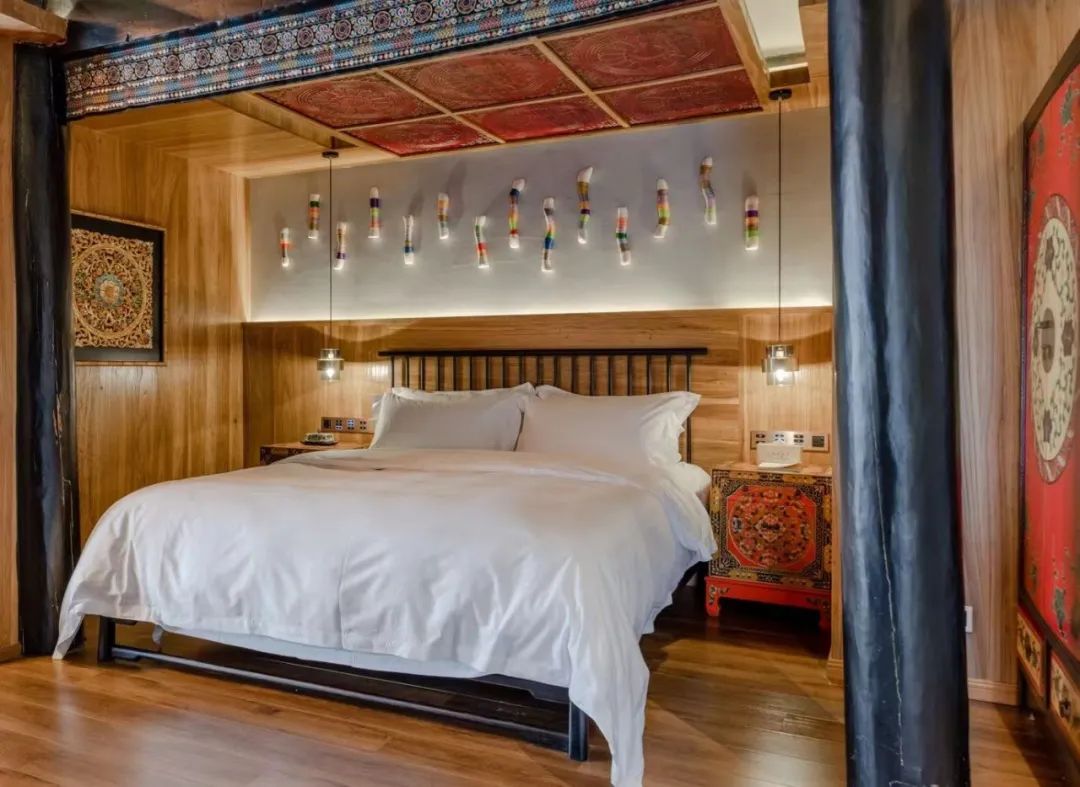 客房内均配置正景落地窗,面朝九寨沟的“神山”—扎依扎嘎,并且全屋搭配free minibar、加湿器、智能家居、音响等一应俱全的品牌硬件,让您深处自然之中的同时,也拥有丰富的轻奢体验。