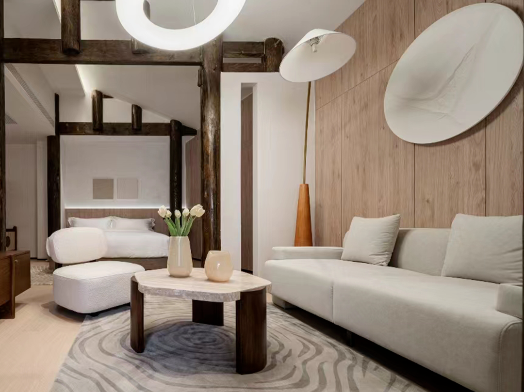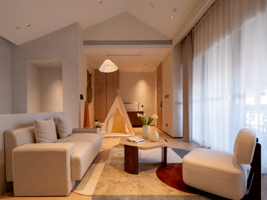 民宿外观延用古城的建筑特色,以石为牌,以瓦铺房,融入当地的特色风格,助力丝绸之路的历史繁荣,亦是传承中式的东方美学。 而民宿内部采用古时四合院的结构特色,在融入当地的人文艺术的同时,增强了民宿的亲和力,给旅客带去浓厚的民族氛围以及最亲近的入住体验。