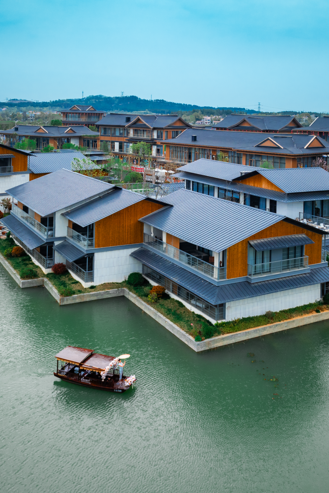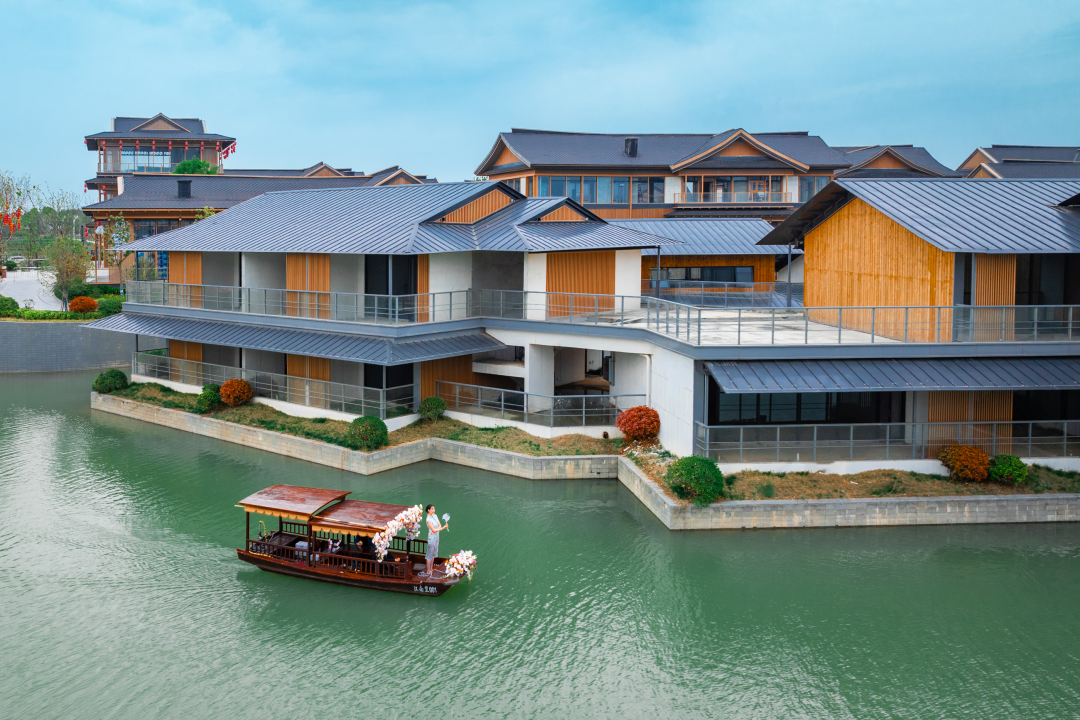 ·东方美学,再现甘露 \ 建筑特色 \ <千里走单骑·甘露山民宿>依旧遵循千里走单骑的宗旨,采取当地特色,融入现代化装饰元素,实现艺术与文化的融合。民宿整体外观融入甘露梦华里的宋式建筑风格,每栋独立建筑依水排列,打造出充满艺术与生活气息的私密空间,充分享受湖山度假体验。