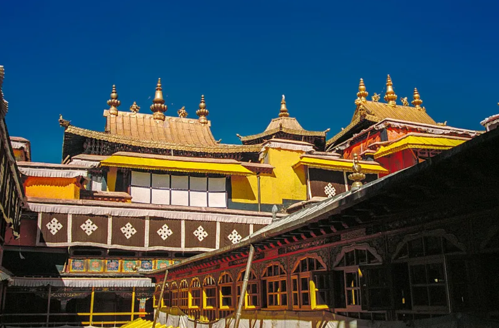 大昭寺 大昭寺位于八廓街内,这里是所有朝拜者朝圣的终点,如果说布达拉宫是藏地的心脏,那大昭寺就是藏地的眼睛,相比布达拉宫的雄伟与威严,大昭寺给人更多的是一种博大和普世之感。