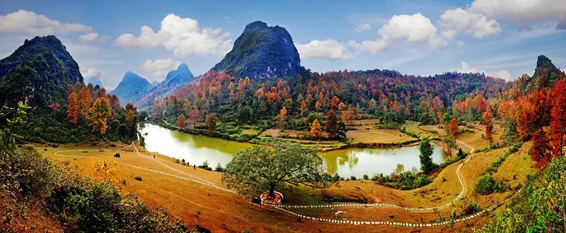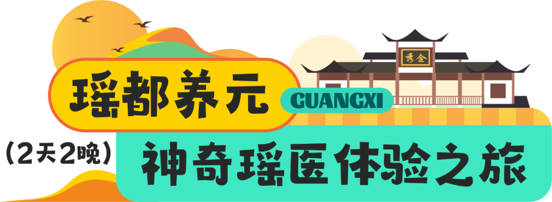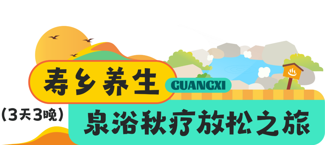 相会八桂新的篇章 Day4:上午来到百色德保,在德保红叶森林公园里欣赏最火红的“枫”景线;下午前往德保矮马王国,骑一骑被誉为“马中熊猫”的矮马。 Day5:上午前往崇左天等一起到立屯天梦景区,参观立屯事迹纪念馆,追忆独有的芳华岁月,感受“宁愿苦干,不愿苦熬”的立屯事迹。下午漫游都康田园景区,奔跑在秋日金黄的稻田小道,收获丰收的喜悦。 Day6:上午走进天等县博物馆暨壮族霜降节博物馆,这里作为了解天等历史文化的重要窗口,拥有丰富的历史文物、土司土治文化以及革命时期的文化遗产。馆内还设有壮族霜降节专题展和非遗项目展示厅,让您在游览中感受到浓厚的民族风情和文化底蕴。到了霜降时节,邀您到天等共赴一场列入“联合国教科文组织人类非物质文化遗产代表作名录”的壮族霜降节,体验欢快的打榔舞;品尝香糯的糍粑、香酥的集劳,尽情了解壮族的稻作文化。 贺州平桂(姑婆山旅游区)——贺州八步(西溪森林温泉度假邨)——贺州昭平(南山茶海、故乡茶博园、老码头鱼馆、黄姚乐耘休闲庄园、黄姚古镇、爱树黄姚书院、黄姚豆豉宴) 相逢绿水青山,邂逅康养广西。美好金秋,让我们走进“世界长寿市”贺州,感受姑婆山的鲜氧、沐浴西溪森林温泉的温暖、沉醉黄姚古镇的悠然,暂时逃离生活的喧嚣,乐享宁静美好的慢生活。 Day1:上午在贺州市区集合,前往姑婆山旅游区酣享森林浴,感受天然的疗养套餐,下午驱车前往“云雾中的森林秘境”西溪森林温泉度假邨,闻着桂花香沐浴养生温泉,晚上入住温泉酒店,享受“中国温泉之城”的自在惬意。  ▲贺州平桂姑婆山仙姑顶 图/图虫@姜伯叔叔Day2:前往贺州昭平,游南山茶海,在茶山间围炉煮茶,喝沁人心脾的昭平茶;下午走进故乡茶博园,了解昭平茶制作技艺。晚上到老码头鱼馆享用桂江全鱼宴。入住花筑·一境田园民宿,在浪漫的花园泳池中修养身心。 Day3:上午前往黄姚乐耘休闲庄园,参与农事体验活动,品尝农家有机美食。下午漫步黄姚古镇,穿梭在青石板路上,感受千年古镇的悠然慢时光;入住爱树黄姚书院,享受片刻的宁静时光;晚上在黄姚古镇内享用豆豉粉、贺州客家酿菜等风味美食。  ▲贺州昭平爱树黄姚书院 图源:爱树·黄姚书院来宾金秀(山水瑶城景区、瑶族博物馆、银杉森林公园、圣堂山景区)——来宾象州(古象温泉度假村) 秋天来广西心启轻愈,一起提神养元。旅程中,您可在“世界瑶都”感受多彩瑶族风情、体验神奇的瑶医瑶浴,沐浴温暖的来宾象州温泉,让您享受山水灵气的同时,体验长寿之乡的疗养之道。 Day1:上午出发“世界瑶都”来宾金秀,到山水瑶城景区感受浓郁的瑶族风情;接着到瑶族博物馆欣赏瑶族特色展品;下午到银杉森林公园观银杉、打卡被誉为“梦幻之蝶”的金斑喙凤蝶;晚上宿金秀山水瑶城,体验神奇瑶医瑶浴。