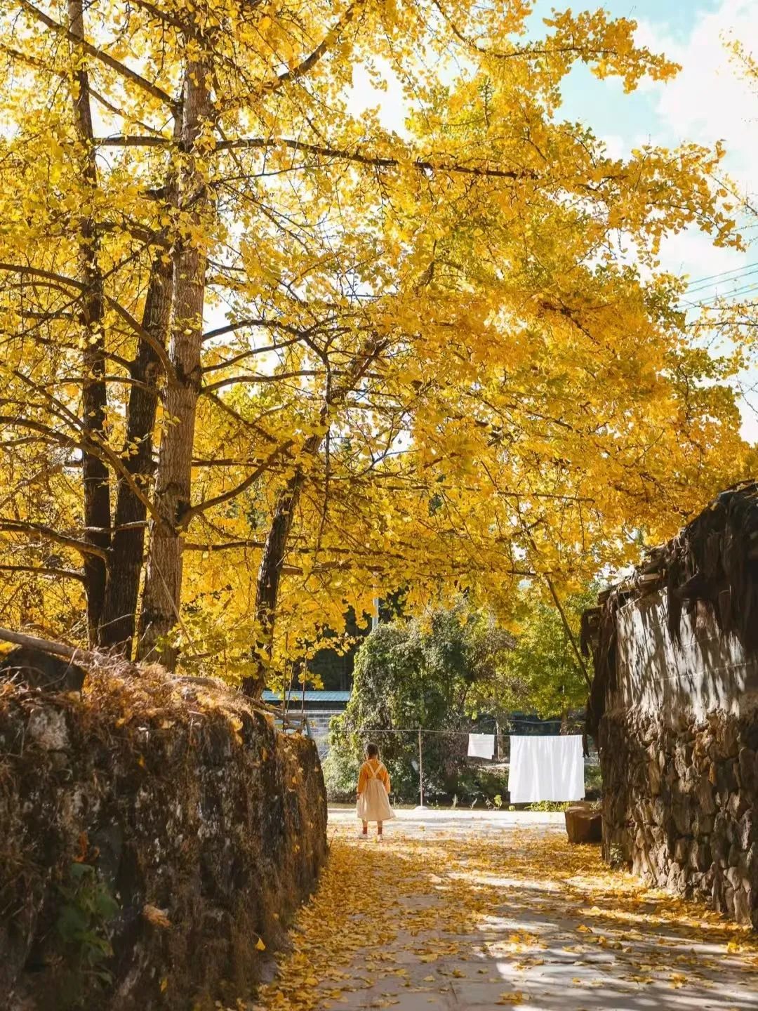 三万棵金黄的银杏树,围绕整个村落,将喧嚣隔绝在山外,只为在深秋的时节,造一处静谧之地,切去一年的疲惫。