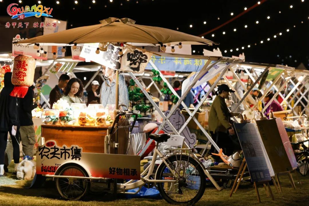 走进桂味农夫市集,一股股诱人的香气扑鼻而来。广西农产品商家带来了黄金百香果、大叶蛋白菊茶、灵马旱藕粉等特色农产品,让人目不暇接。