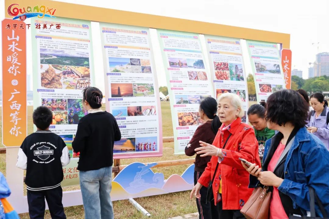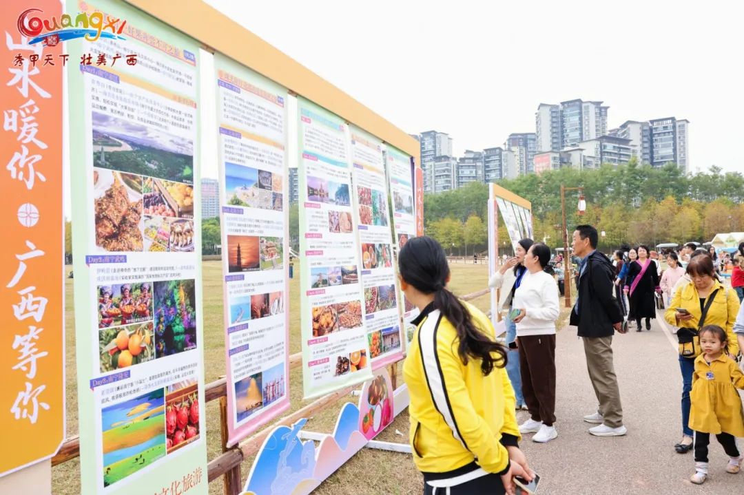 活动现场布置的乡村旅游主题创意打卡装置和冬游广西线路展示装置,成为了游客们拍照留念的热门地点。主题旅游线路推荐视频的轮播,更是让游客们对冬游广西充满向往。