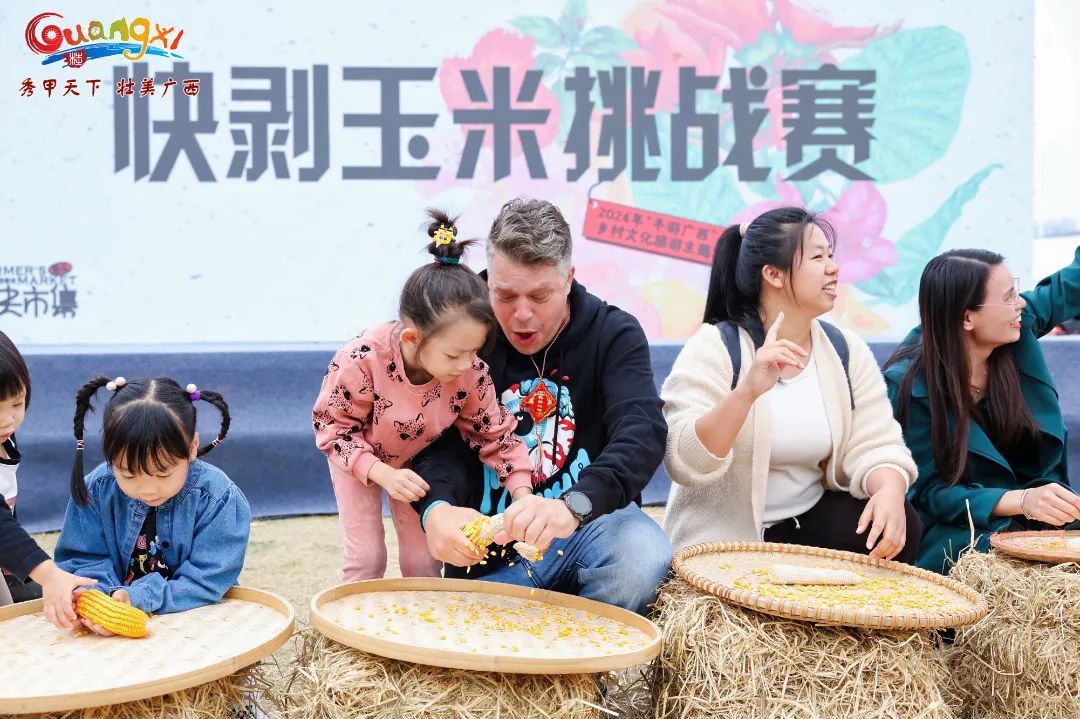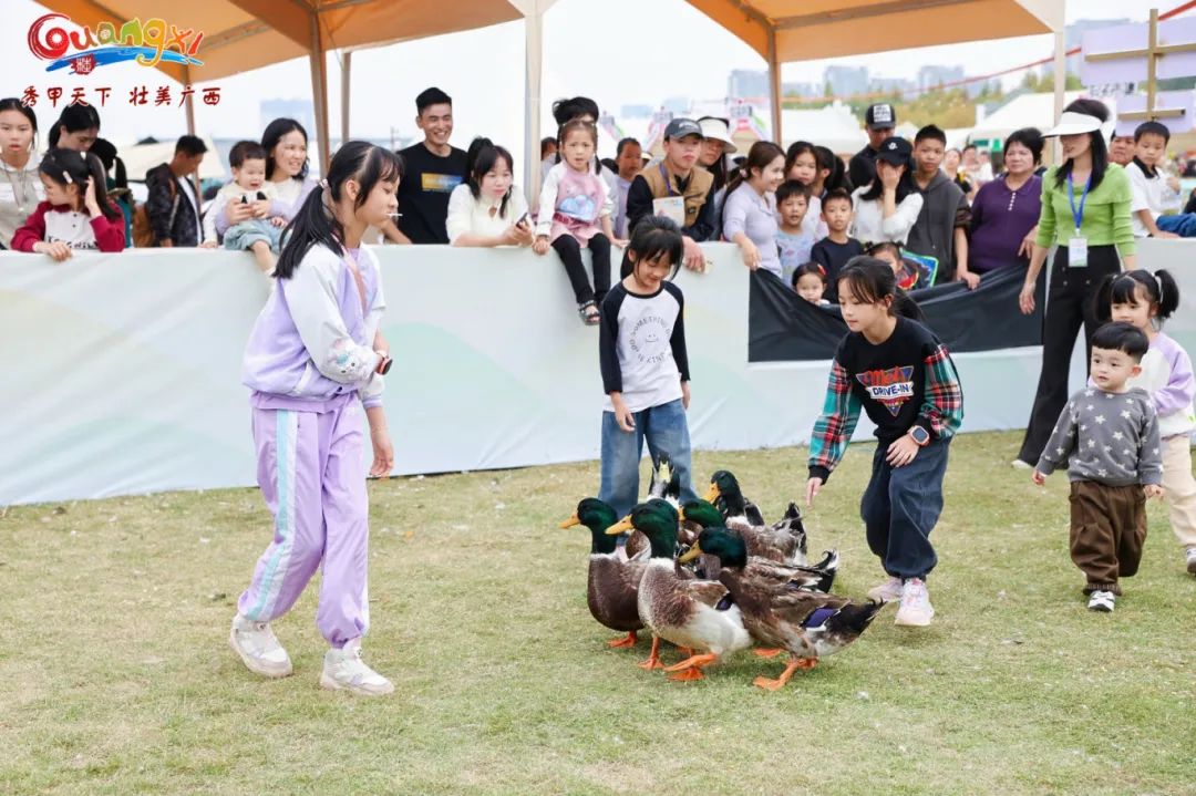此外,丰富的互动游戏也吸引了众多游客的参与,猜水果、啃甘蔗、剥玉米、水果蹲、赶鸭子,趣味打卡赢取惊喜礼品。