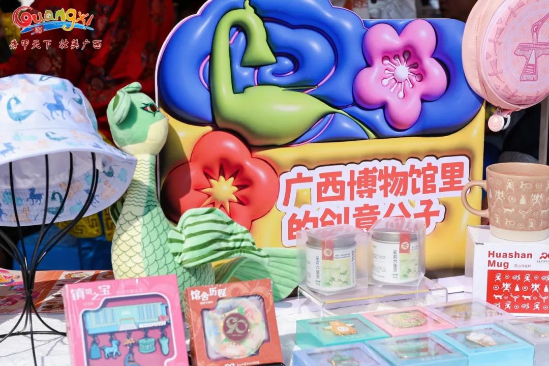 文创好物,绚烂非遗。广西邮政文创车、广西博物馆现场进行广西旅游文创产品及博物馆文创周边展示吸引了大批年轻人。