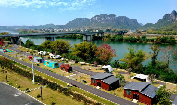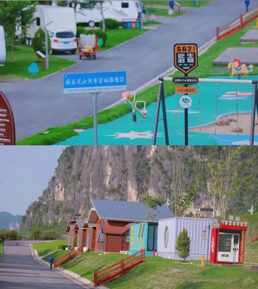 这里绝对是露营爱好者的天地!被绿水青山环绕,坐拥一线美景!一起与山水为伴,与星辰为伍,与亲朋好友在夜色下谈天说地,在快节奏的生活之余偷得浮生半日闲,共创属于自己的“城市出逃记”。  ▲ 广西花山汽车营地环境 图/小红书 黄渣渣