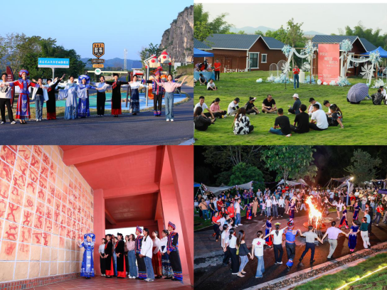 营地还不定期举办乡村音乐节、美食节、篝火晚会、“三月三”民俗活动体验等,承办中越青年交流活动、红色研学活动等,只要你来,周周有活动,天天都精彩!  ▲ 广西花山汽车营地各类活动