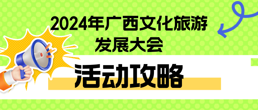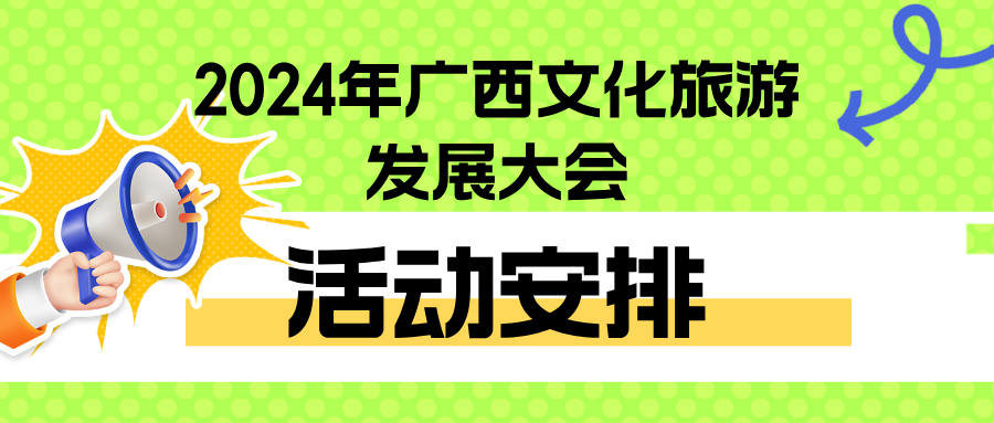2024年广西汽车旅游大会暨“一键游广西”快乐新体验活动;2024年广西文化旅游嘉年华;2026年广西文化旅游发展大会承办城市竞选会;2024国际旅行商大会;2024年广西文化旅游产业投融资大会;“跟着故事游广西”——2024年广西创意导游大赛。